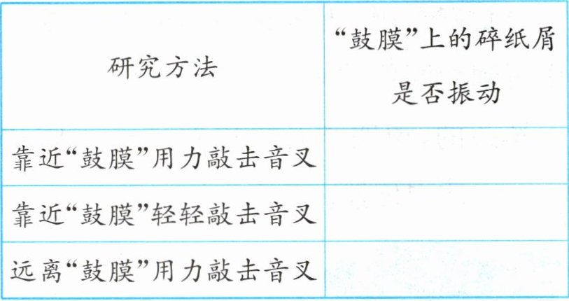 3. 研究“鼓膜”的振动,记录并分析实验现象,完成下面的实验发现。