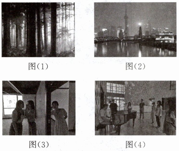 2. 在教室讲台上固定一只激光笔,用多个小纸板由远及近地接收激光并在纸板上形成光斑,此时将纸板位置固定,再观察多个小纸板的排列情况。为了便于观察光的路径,用喷水壶喷出大量水雾,用激光笔在水雾中射出光束,观察光传播的路线。通过观察我们知道,光在空气中沿