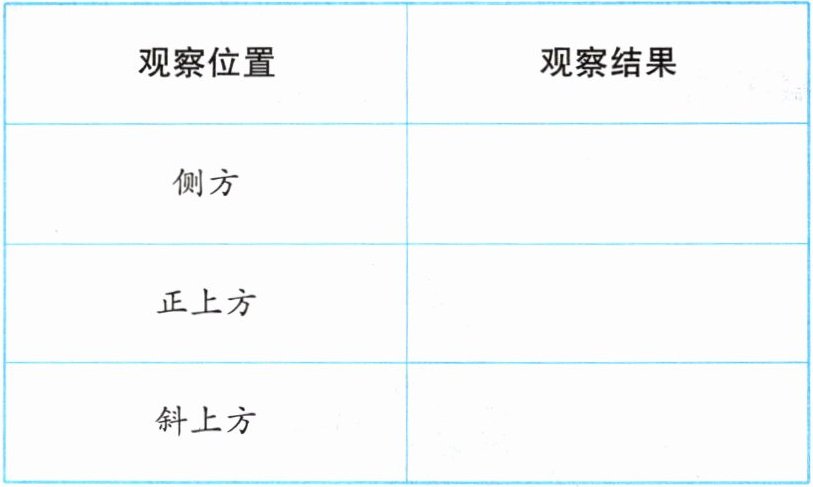 我们知道光在空气和水中都是沿直线传播的,那么光从空气进入水中时,传播方向会发生变化吗?请同学们在一透明的玻璃杯里倒入水,放入筷子,从侧方、正上方、斜上方各个角度进行观察,并将观察结果记录下来。