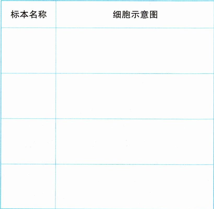 我们在课堂上利用显微镜观察了许多生物细胞标本,请画一画它们的示意图。