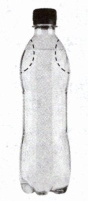 1. 从塑料瓶上裁剪两片对称的凸起的塑料片,如图所示(沿虚线处剪开)。