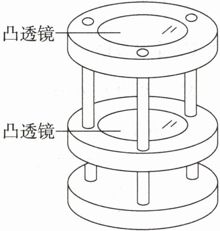 3. 利用三根吸管将三个圆板进行连接固定,未带凸透镜的圆板在最下面,保证带有凸透镜的两个圆板可以上下移动。