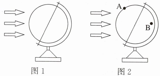 模拟地球。(2)如图 1 所示,太阳光能照亮整个地球吗?请你用阴影表示不能被照亮的部分。
