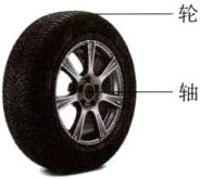 2. 在下图中车轮的相应位置标出“轮”和“轴”。