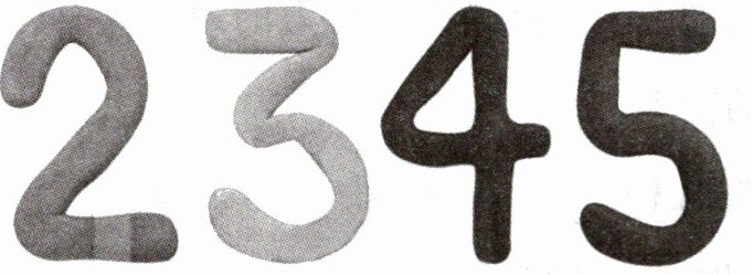 2. 按照自己的观察,用橡皮泥制作能够印刷出“2345”这几个数字的字模,并在托盘上摆放好。