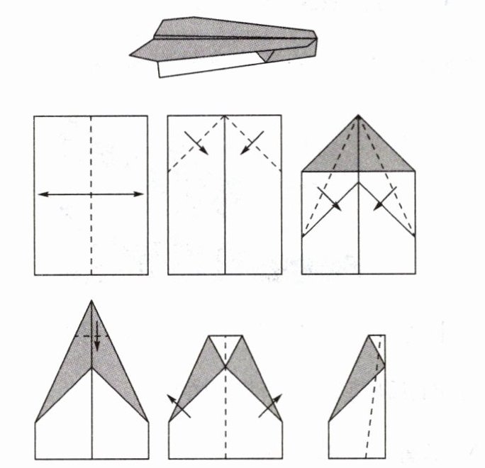 探究问题:请教你的同学叠一架纸飞机(可以参照下图中的方法)。你想用什么工具将折叠纸飞机的方法传递给同学呢?