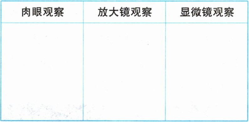 2. 图略 显微镜看到的图像最大,其次是放大镜,肉眼看到的图像最小;肉眼能看到的范围最大,其次是放大镜,显微镜看到的范围最小。