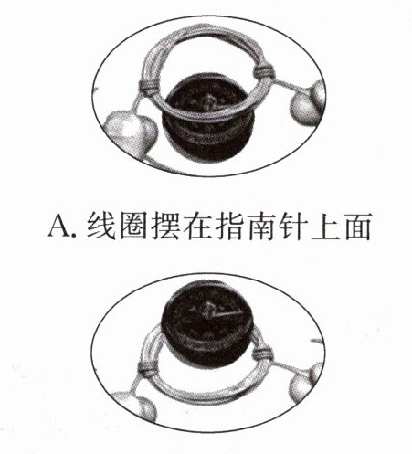 )指南针偏转最明显。A. 线圈摆在指南针上面