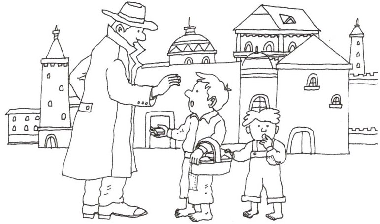 晚上,旅馆的人告诉我,有一个小男孩要见我。小孩被带进来后,我发现他不是那个卖火柴的小男孩,但可以看出这是他的弟弟。弟弟穿得更破烂了,他站在那里,在他的破衣服里乱找了一气,然后才问:
