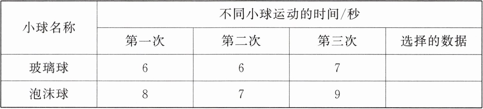 东东通过实验比较不同小球在同一轨道上自由滚动时运动的快慢,下面是实验记录表,请你根据他的记录表回答下列问题。