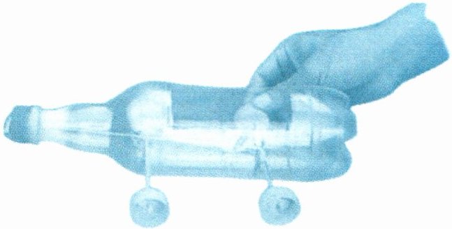 实验材料:带轴轮的简易小车(可用矿泉水瓶和自制轮子)、相同规格的橡皮筋 (若干条)、直尺或卷尺、平坦的桌面或地面。