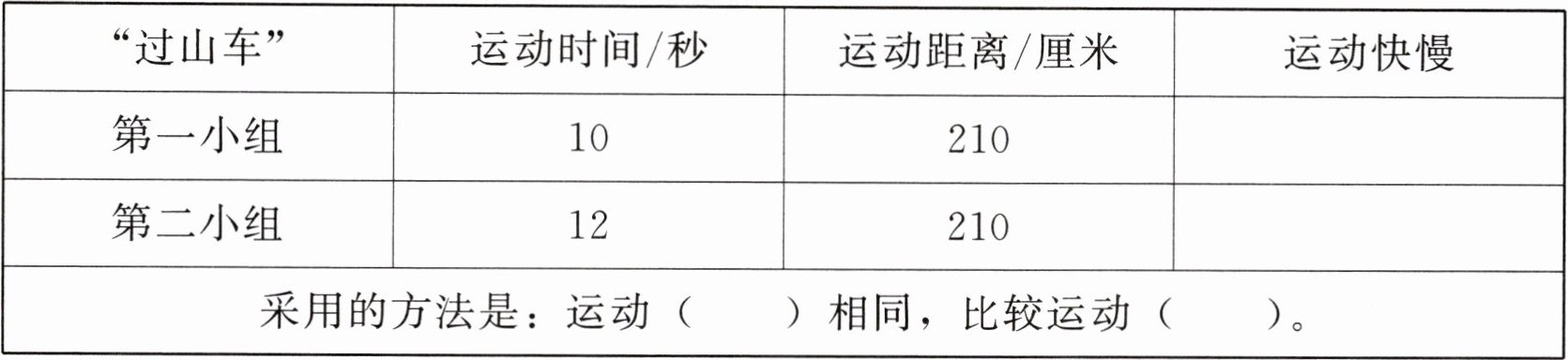 |“过山车”|运动时间/秒|运动距离/厘米|运动快慢|