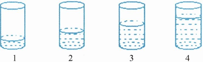 1号、2号、3号、4号四个相同的玻璃杯,分别装上自来水(如下图),用小棒用同样的力敲击杯口。请你判断:玻璃杯发出的声音有什么不同?