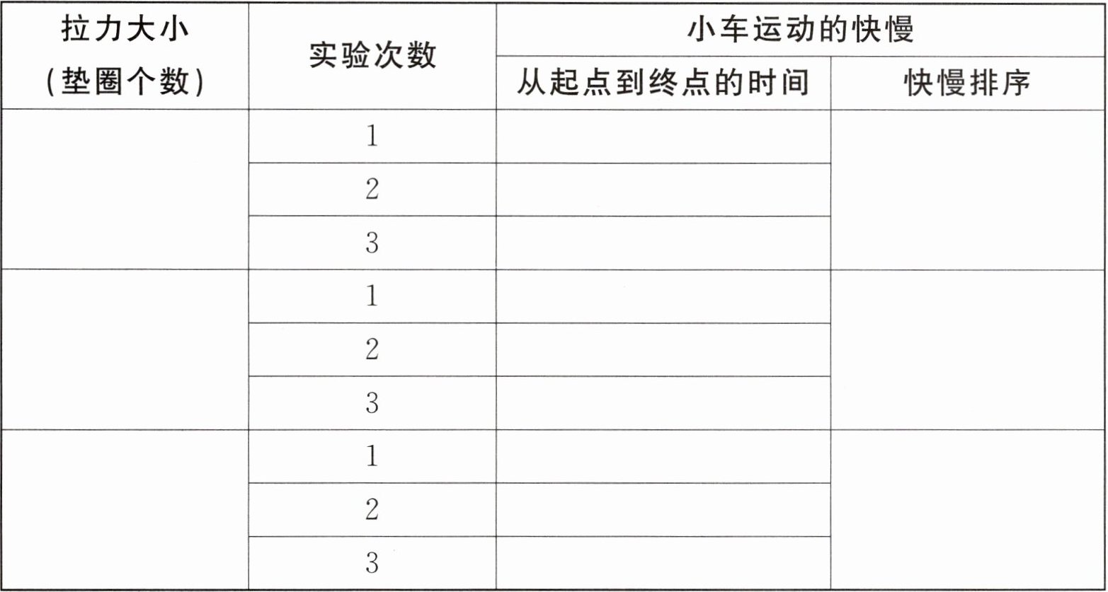 |拉力大小(垫圈个数)|实验次数|小车运动的快慢|