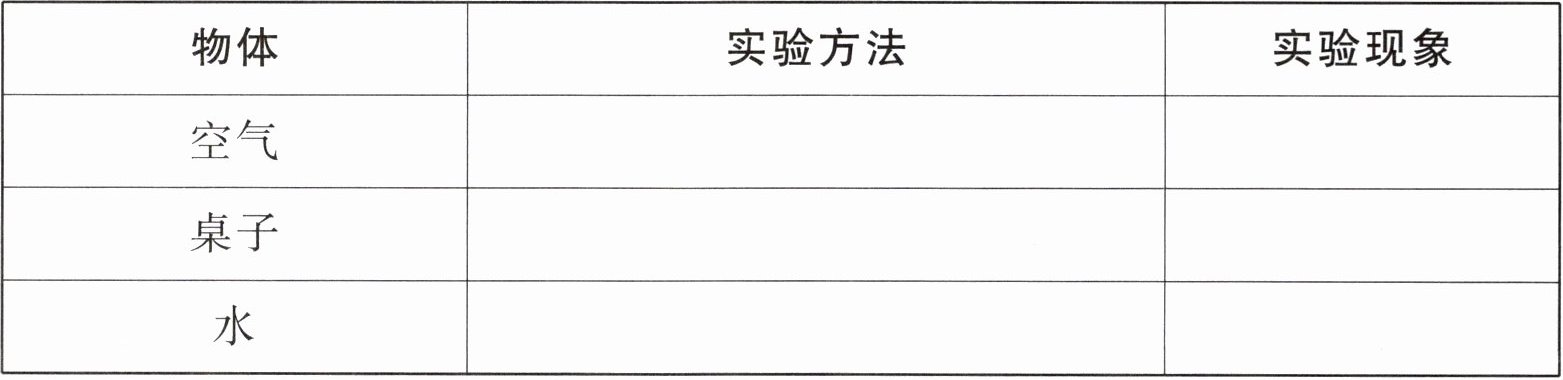 | 空气 | 在一个房间内,让一个同学轻轻敲击桌子的一端,另一个同学在远处听声音 | 听到敲击声 |