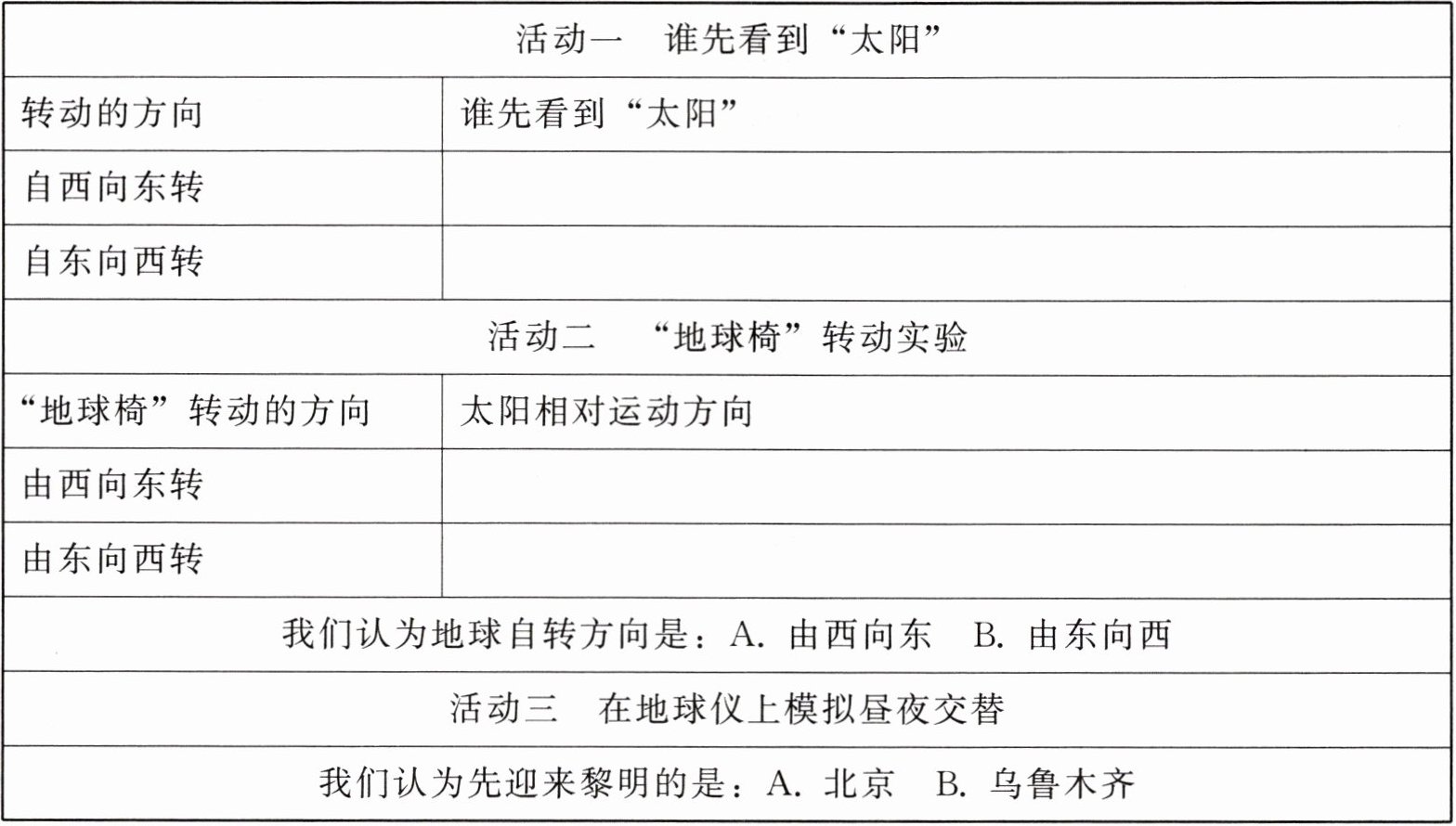|活动二 “地球椅”转动实验| |