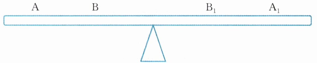 3. 爸爸坐在跷跷板左边的 B 位置,是爸爸体重一半的小明应该坐在哪个位置才会出现平衡?