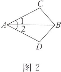2. 如图2,若∠1= ∠2,∠C= ∠D,则△ADB≌△______,依据是______.