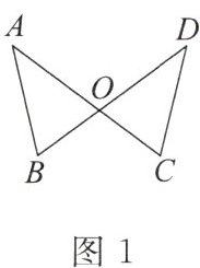 1. 如图1,AC,BD相交于点O,∠A= ∠D,请你再补充一个条件,使得能利用“角边角”判定△AOB≌△DOC.你补充的条件是( ).