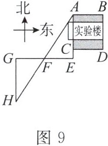 2. 综合实践课上,白老师带领同学们利用数学知识测量距离。该中学实验楼的两侧有两堵平行的墙 $ AB $ 与 $ CD $,因实验楼在两堵墙之间而不能直接测量两墙之间的距离,同学们想到了许多方法。淇淇的想法如下:如图 9,点 $ A $,$ C $,$ E $ 在一条南北走向的直线上,从点 $ E $ 出发走到点 $ F $ 处插上标志旗帜,再沿着 $ EF $ 的延长线走同样的距离到达点 $ G $,从点 $ G $ 出发向南走,当所在位置与点 $ A $ 及点 $ F $ 在一条直线上时将此处标记为点 $ H $。若想求出 $ AC $ 之间的距离,则需测量长度的线段为( )。