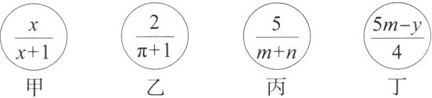 1. 如下图,甲、乙、丙、丁四名同学手中各有一张圆形卡片,则手中卡片的式子为分式的同学是 ______。