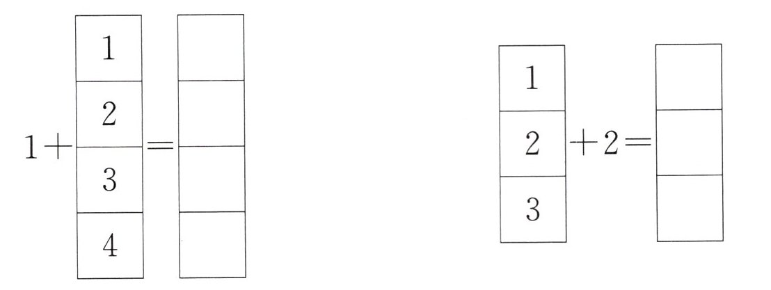 5. 看图讲加法故事,并写出算式。