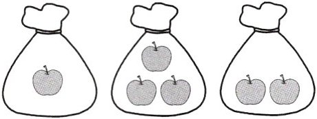 6. 小丽从下面的 3 袋苹果中买了 2 袋,她最多买了几个苹果?最少买了几个苹果?