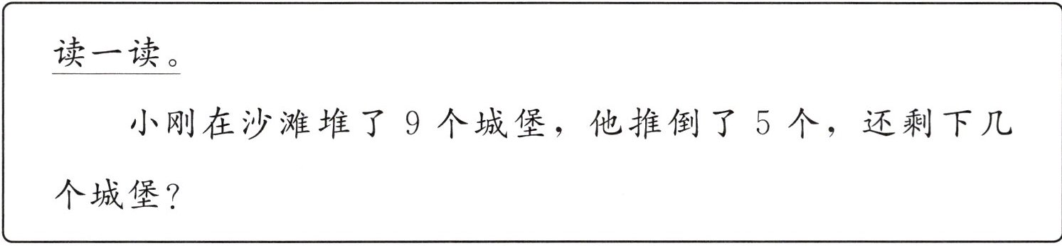 小刚在沙滩堆了9个城堡,他推倒了5个,还剩下几个城堡?