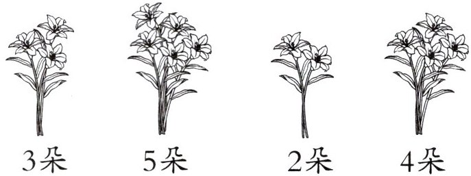 6 小丽买了两束花,她可能买了多少朵?说一说,并列式计算。