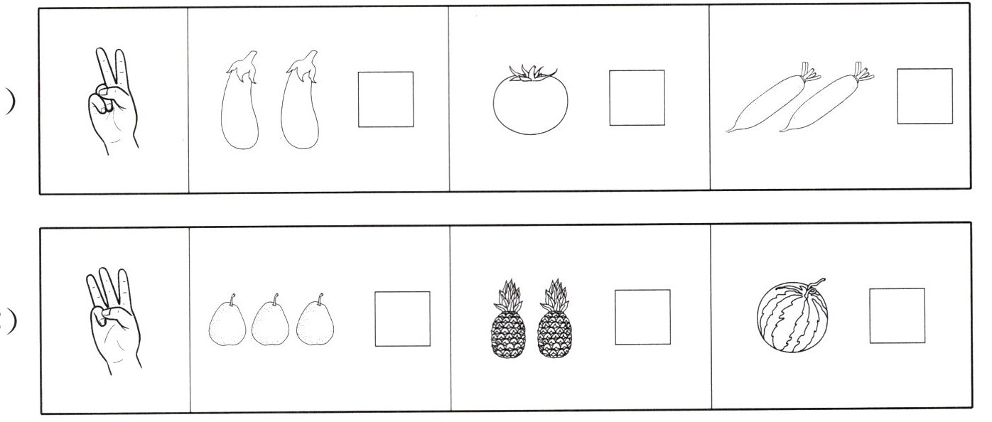 4 根据举起手指的个数,在合适的图右边的$□$里画“√”。