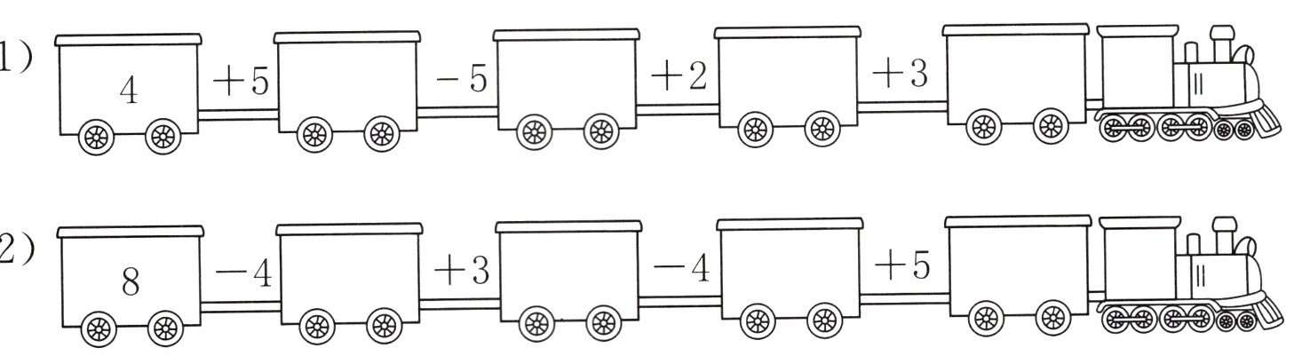 $8 - 4 =$ $2 + 7 =$ $9 - 2 + 1 =$ $7 - 4 - 1 =$