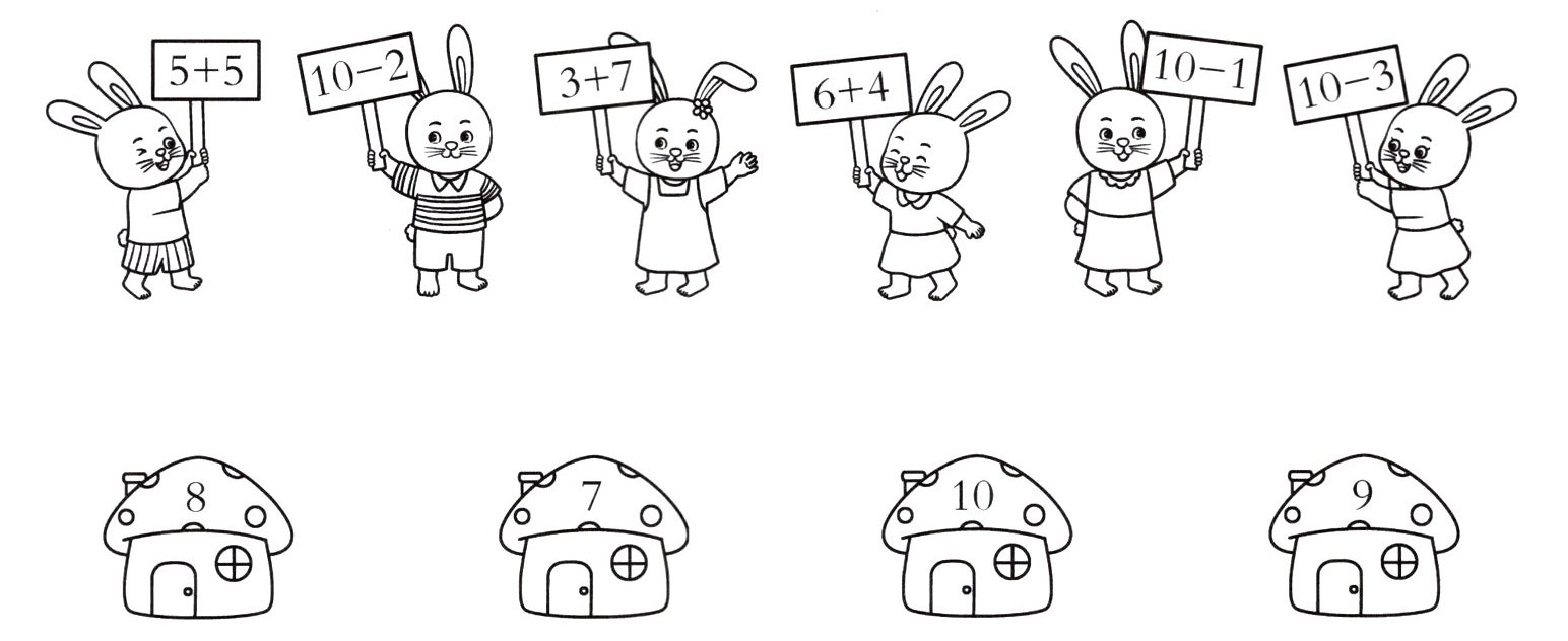 $ □ + 3 = 10 $ $ 10 - □ = 2 $ $ 9 + □ = 10 $