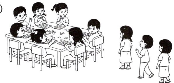 原来有 7 人在玩拼图,又来了 3 人。一共有多少人?