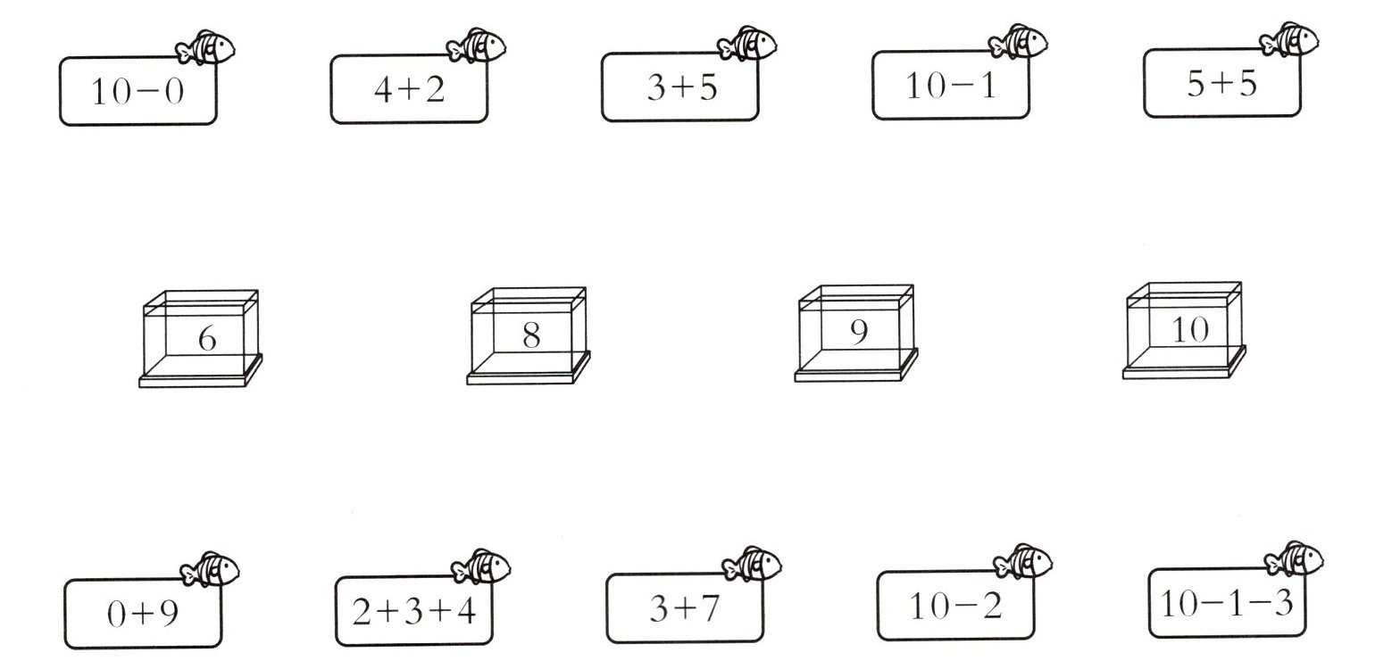 $0 + 9$ $2 + 3 + 4$ $3 + 7$ $10 - 2$ $10 - 1 - 3$