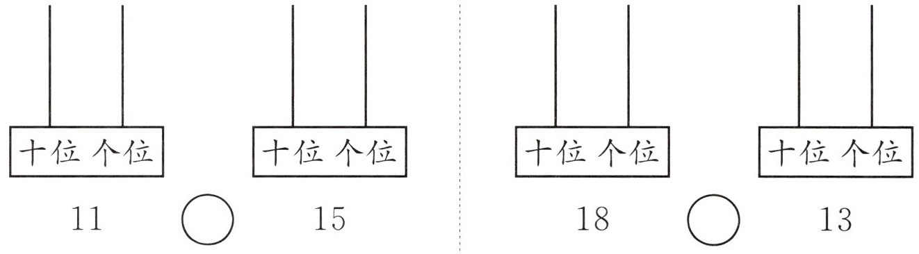 3 看数画珠,在$◯$里填上“$>$”或“$<$”。