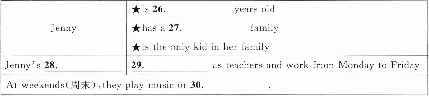 你将听到一篇短文,请根据短文内容,将所缺信息填入对应的横线上,每空一词。短文读三遍。