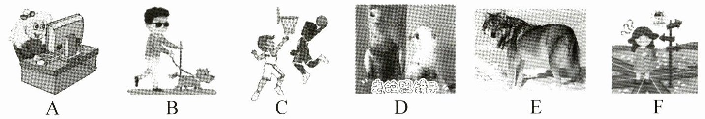 你将听到五个句子,请选出与所听句子内容相符的图片,有一幅图是多余的。每个句子读两遍。
