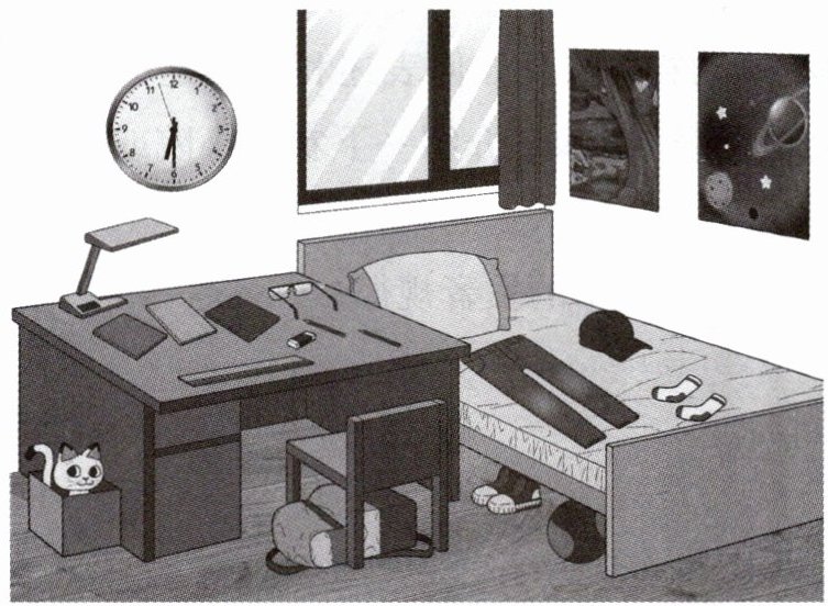 3. In Picture 1, the books are on the desk. But in Picture 2, the books are on the bed.
