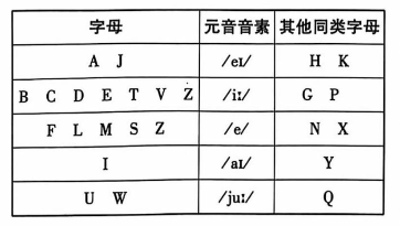 六、写出下面表格中每组字母的元音音素,并从 26 个英文字母中找出含有该元音音素的其他同类字母(大写形式)。