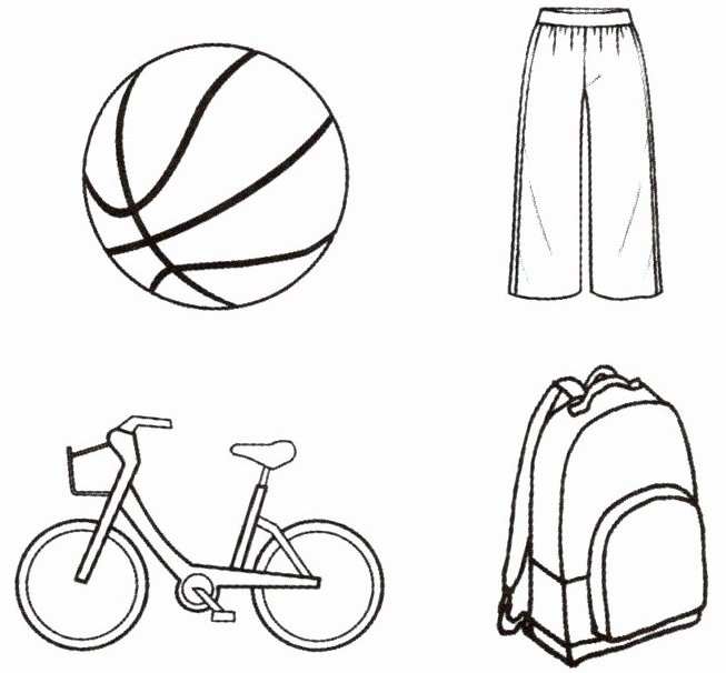 一、新学期开始了,你需要买以下物品。你喜欢什么颜色呢?请将下列物品涂上你喜欢的颜色,并写出表示该颜色的英文单词。