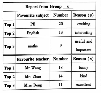 | | Favourite teacher | Number | Reason(s) |