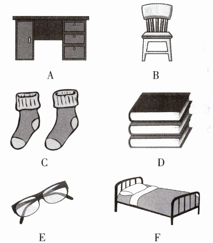 一、下列图片分别对应的是哪些物品呢?请将图片序号填写在对应英文名称前的括号内。