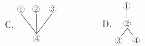 [图示结构选项,C选项为①总,②③分述,④总结;D选项为①总,②分述,③④总结等形式]