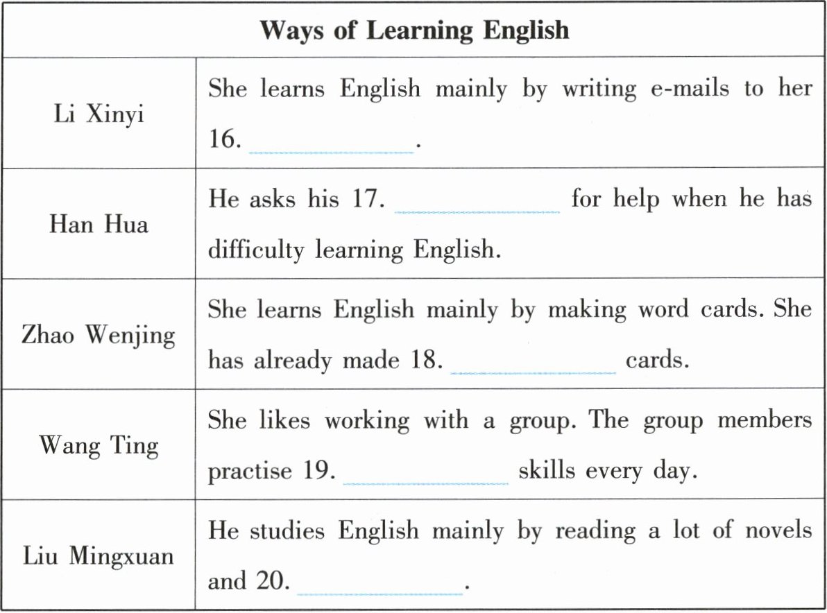 16. friends 17. teacher 18. 300 19. writing 20. magazines