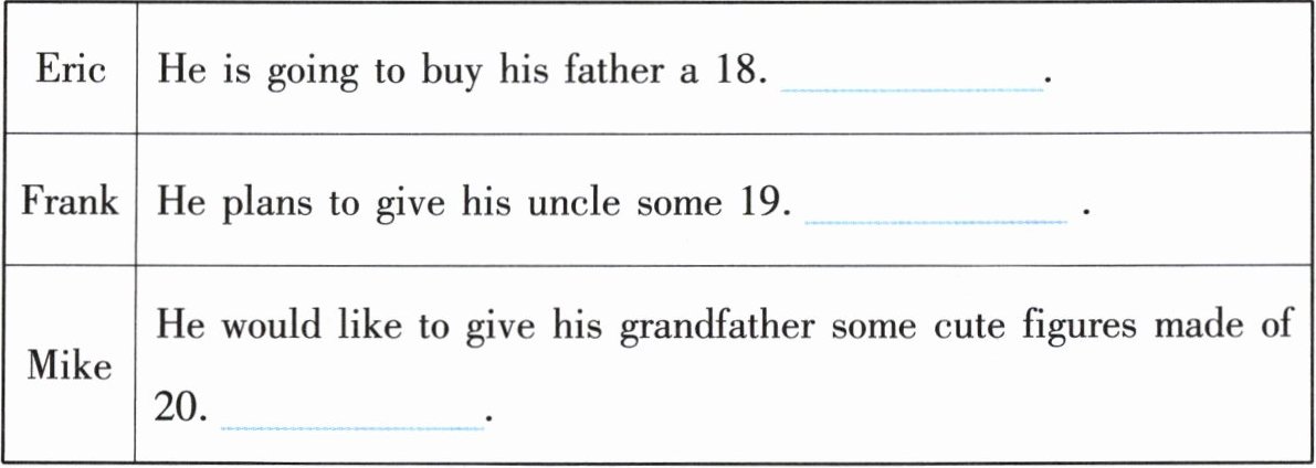 听下面一篇短文。根据短文内容写出下面表格中所缺的单词,每空限填一词。短文读两遍。