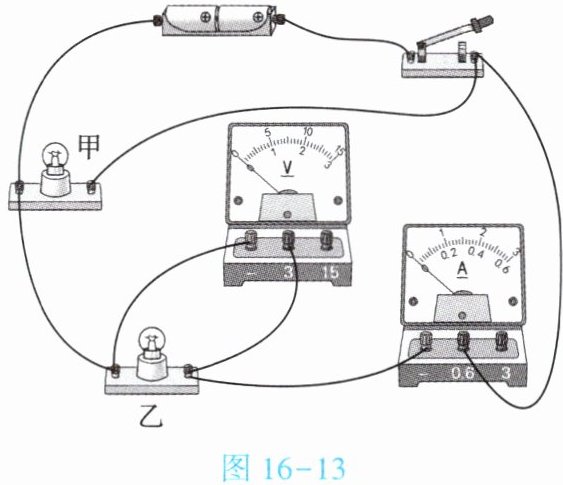 7. (★★★)如图 16 - 13 所示的电路中,闭合开关,甲、乙两灯泡均发光,过一会儿,其中一个灯泡突然熄灭,但两电表指针仍明显偏转。造成此现象的原因可能是【