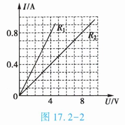 4. (★★)如图 17.2 - 2 所示是两个电阻器的电流随电压变化的关系图像,由图中信息可推断电阻器的电阻 $ R_1 $