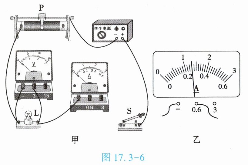 (4)排除故障后继续实验,她将得到的数据记录在下表中,当电压表示数为2.5V时,电流表的示数如图17.3-6乙所示,为______A,则小灯泡正常发光时的电阻为______Ω(保留一位小数)。她发现小灯泡的电阻是变化的,随其两端电压的增大而______(填“增大”或“减小”)。