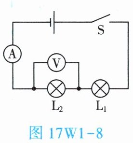 8. (★★★)如图 17W1-8 所示的电路图中,闭合开关 S 后,两灯泡均不发光且电流表、电压表示数均为零。现将两灯泡位置互换后再次闭合开关 S,电流表示数仍为零,电压表指针明显偏转。根据以上信息判断该电路故障可能为【