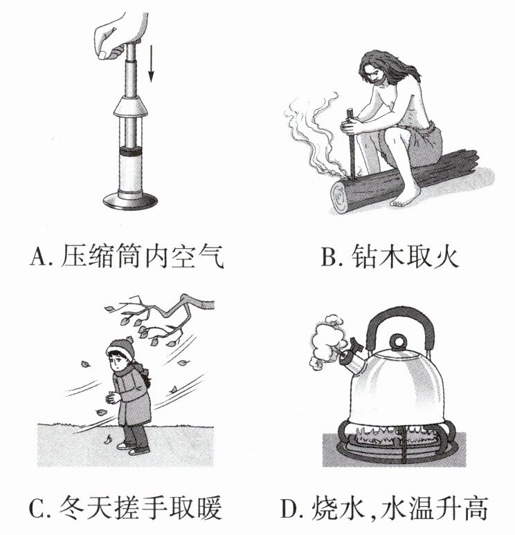 4. (★★)(2024·福建改编)“煮”的篆体写法如图13.3-2所示,表示用火烧煮食物。下列实例与“煮”在改变物体内能的方式上相同的是【